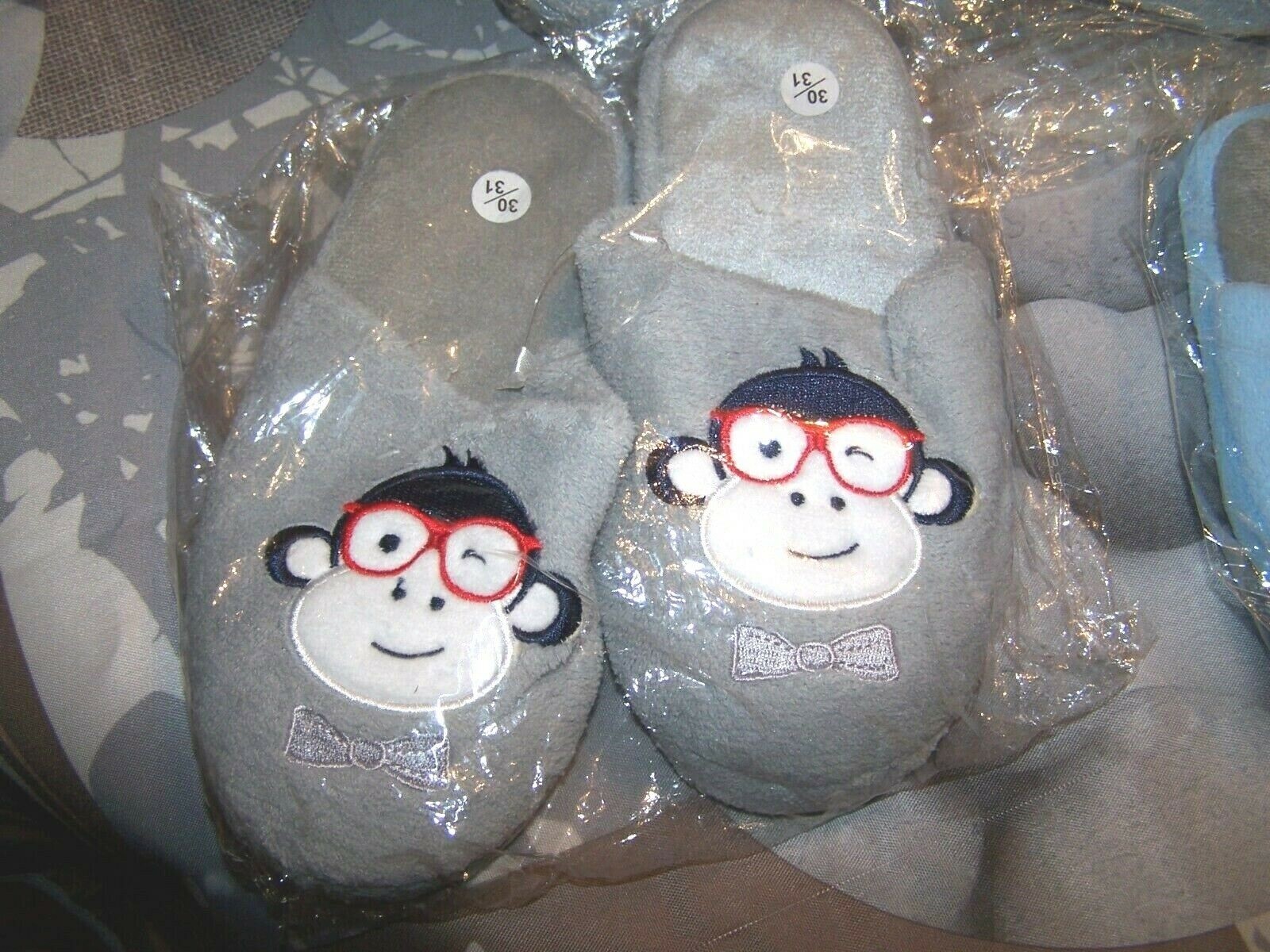pantoufle enfant tête de singe gris